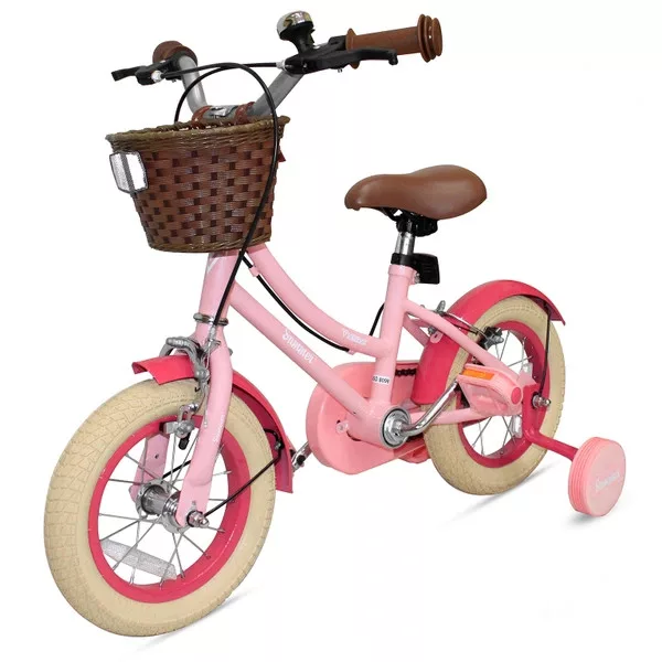 A 12 hüvelykes, rózsaszín Verve Summer gyermekkerékpár ideális kerékpár 3 éves kortól a gyerekek számára, ötvözve a szórakozást, a biztonságot és a praktikumot!