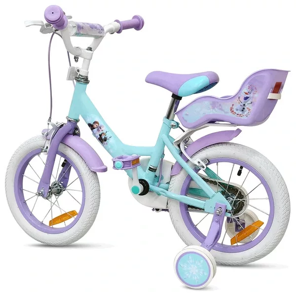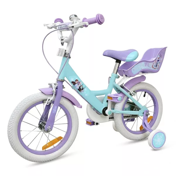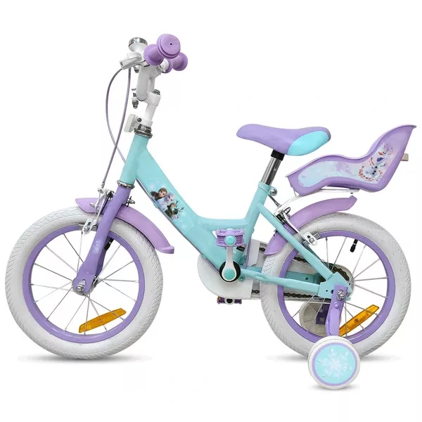 Tartalom: 1x 14 hüvelykes Disney Jégvarázs gyerekbicikli pótkerekekkel, türkiz/lila