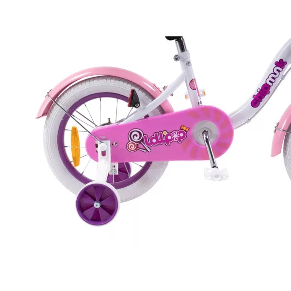 Tartalom: 1x 14 hüvelykes gyermekbicikli Chipmunk Lollipop pótkerekekkel, rózsaszín és fehér színben