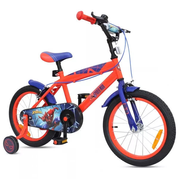 Tartalom: 1x 16 hüvelykes Pókember gyermekbicikli pótkerekekkel, piros/kék
