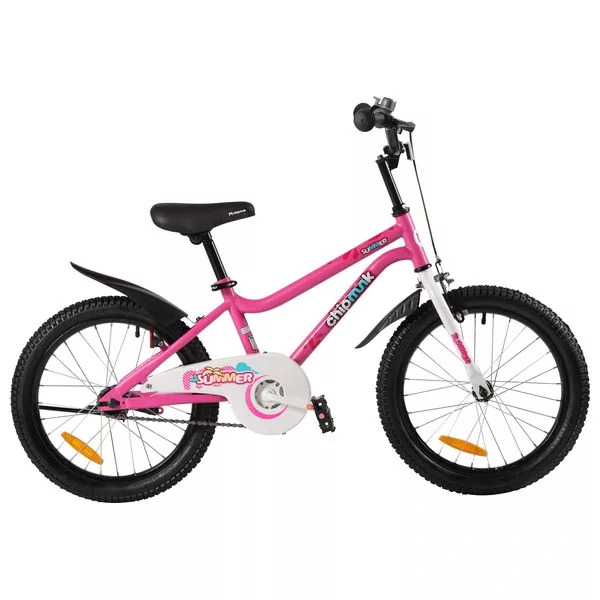 A rózsaszín Chipmunk Summer kerékpár ideális az aktív kis kerékpárosok számára. A mountain bike váz masszív acélból készült, a pedálok csúszásgátló felületűek, a fékkarok pedig kis kezekhez lettek tervezve.