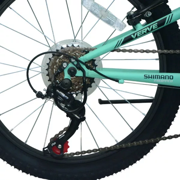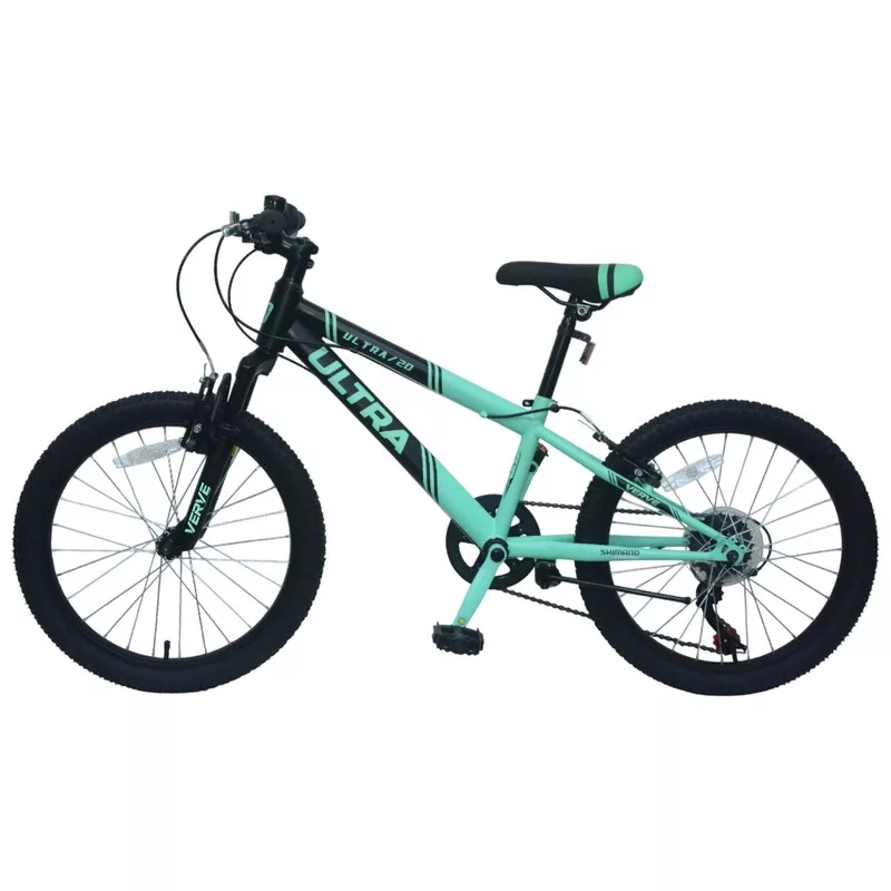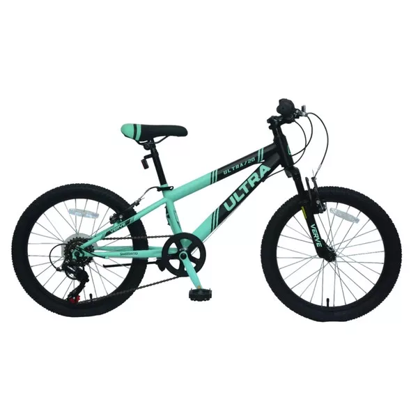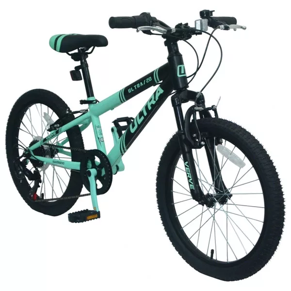 20 hüvelykes gyermek mountain bikeként a Verve Ultra különösen alkalmas nyolc éves kortól kezdődő gyermekek számára, akik nemcsak iskolába járásra használják a kerékpárjukat, hanem olyan ösvényeket is szeretnének felfedezni, amelyek nem tökéletesen simaak. A fekete és türkiz színséma sportos megjelenést kölcsönöz ennek a 20 hüvelykes kerékpárnak, amely biztosan felkelti majd a barátaid figyelmét.