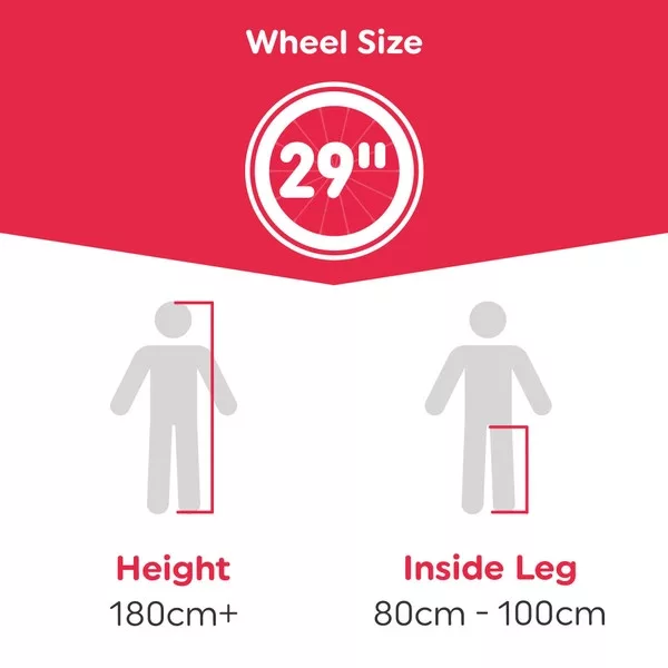 A dupla falú alumínium felnik pneumatikus gumiabroncsokkal tartósságot és stabilitást biztosítanak. Kitámasztó, csengő és sárvédők is tartoznak hozzá. Az első és hátsó fényvisszaverők növelik a láthatóságot a forgalomban. Ez a 29 colos mountain bike körülbelül 12 éves kortól alkalmas, körülbelül 80-100 cm belső combhosszúságú gyermekek számára.