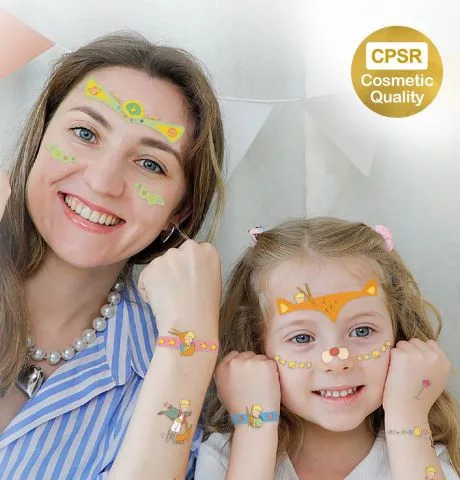 • Biztonságos és bőrbarát: A matricák és tetoválások kiváló minőségű, bőrbarát anyagokból készülnek, így a gyermekek biztonságosan használhatják őket. Nem okoznak irritációt vagy allergiás reakciókat.