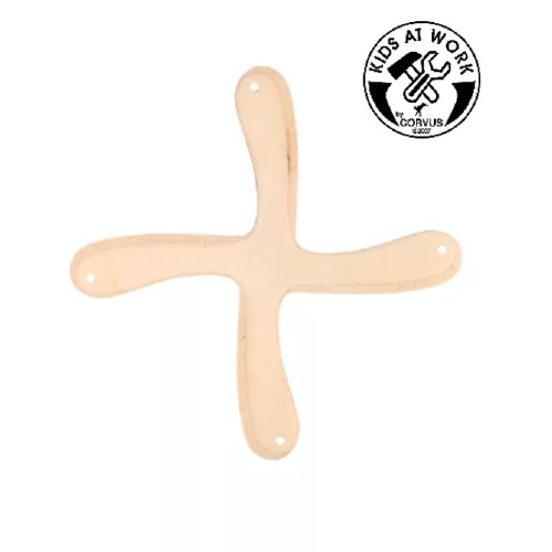 Több fajtája és formája ismert, ebben az esetben egy 4 szárnyú, visszatérő bumerángot készíthetsz magadnak. Ha ügyesen készíted el, és jól használod, akkor miután eldobod vissza fog repülni Hozzád. Ebben a csomagban egy 3 rétegű nyírfa lemezt találsz amiből a csomagolásban lévő sablon segítségével kivághatod a buneráng formát. Reszelő segítségével a szárnyak bizonyos részeit a megfelelő módon szükséges lekerekíteni, úgy nevezett "szárny profilt" kialakítani. Az elkészítéshez szükséged lesz lombfűrészre, reszelőre, csiszolópapírra.