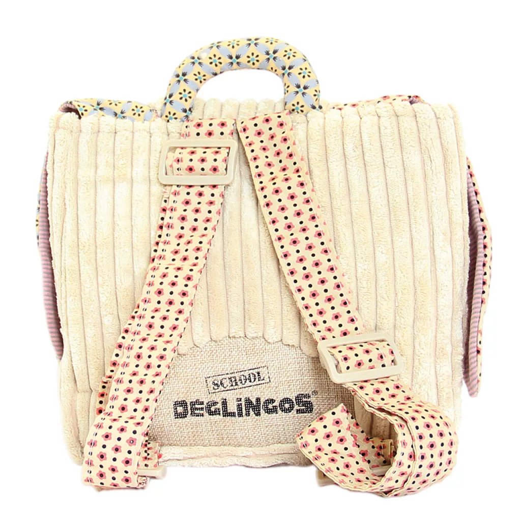 Az iskola előtti időszakra méretezett, szuper puha, vastag-kordbársonyból készült cuki hátitáska, állítható színes vállpánttal és kisméretű fogantyúval.