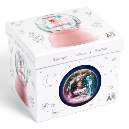 A Djeco csillámgömbje a szivárvány színeit lágy ütemben váltva varázsol csodás hangulatot a picik szobájába. A gömb talpában található keringető gondoskodik a csillámok folyamatos mozgásban tartásáról, így nem csak a csodás színek, hanem a csillámok csillogása is megjelenik a falon, elvarázsolva ezzel tulajdonosát. Fénye nem erős, finoman világitja meg a szobácskát ezért is neveztük el jelzőfénynek. Célja a gyermek nyugodt elaltatása. A bekapcsoló gombon kívül, ami a folyamatos működésért felel, a gyártó egy időzítőt (timer) is tett a termékbe. Ez egy 45 perces program ami az idő leteltével automatikusan kikapcsolja a gömböt, így a szülőknek nem kell később gondoskodniuk a kikapcsolásáról.