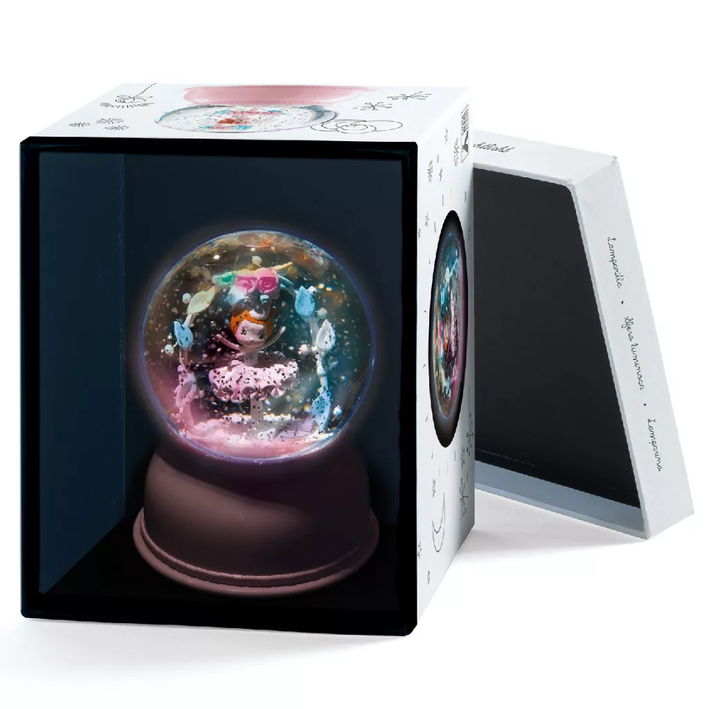 Balerinás csillámgömb, ami a szivárvány színeivel beragyogja a szobácskát.