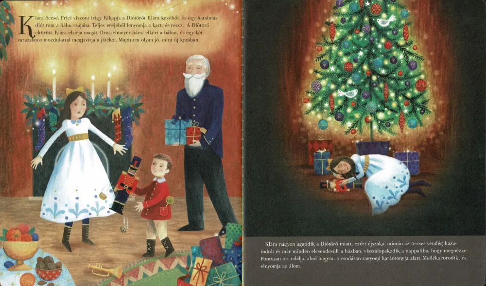 A Napraforgó Könyvkiadó kiadásában megjelent Karácsonyi varázslat: A Diótörő című mesekönyv varázslatos utazásra invitálja az olvasókat egy csodálatos mesevilágba. Az első pillanattól kezdve lenyűgöző élményben lehet részünk, hiszen a könyv csodás, 3D-s élménnyel indul: ahogy kinyitjuk, máris elénk tárul a mese varázslatos világa, és beleszippantja az olvasót az ünnepi hangulat.