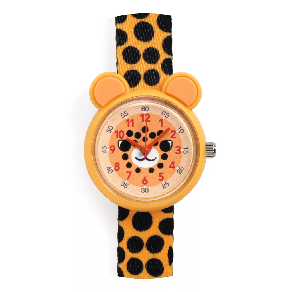 Egy elegáns és gyönyörűen illusztrált gepárdfej alakú kvarcóra, amellyel a gyermek megtanulja, hogyan kell leolvasni a pontos  időt. Azon felül, hogy elegáns gyermek karóra, oktató óra is, mert a  két különálló számlapjával (az egyik az órákat, a másik a perceket mutatja) megkönnyíti az óra és perc felfogását. A japán Miyota 2035 mozgalomnak köszönhetően az óra ketyegése nagyon csendes. Az óra ütésálló tokkal van ellátva és 3 barig vízálló. 1 db elemet  (SR626SW) igényel.