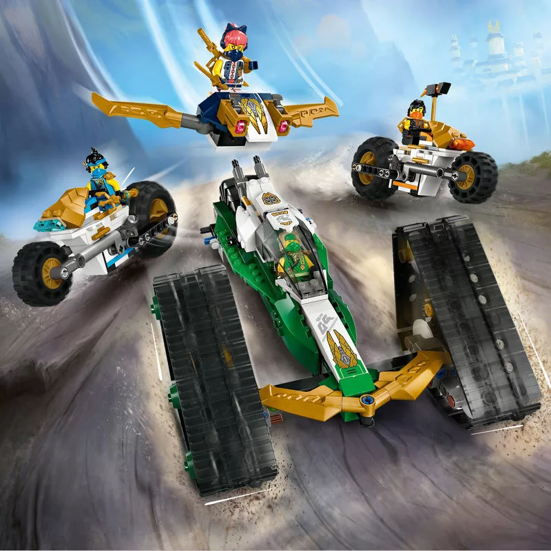 • Gazdag minifigura választék: A készlet hat minifigurát tartalmaz: Cole-t, Sorát, Nyát, Kai-t, Jiro-t és egy farkasmaszkos harcost. Ez a sokszínűség azonnal lehetővé teszi a szerepjátékot, a jóság és a gonosz közötti harc eljátszását, valamint a saját történetek kitalálását a NINJAGO® univerzumban.