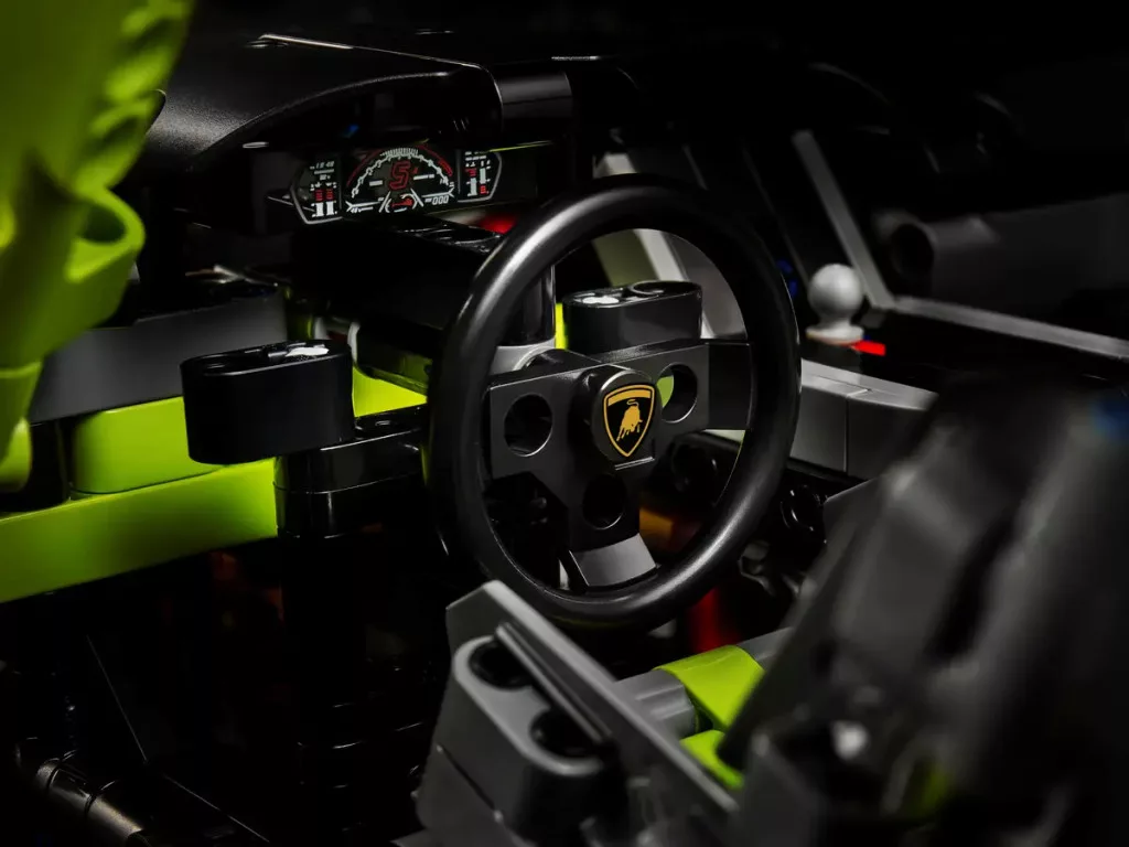 • Funkcionális 8-fokozatú szekvenciális sebességváltó: A modell egyik leglenyűgözőbb technikai funkciója a teljesen működőképes 8-fokozatú szekvenciális sebességváltó, amely a pilótafülkében lévő váltókarral működtethető. Az előny, hogy a felhasználók megismerhetik egy modern sportautó komplex váltórendszerét, és a Technic építés révén megérthetik annak belső működését.