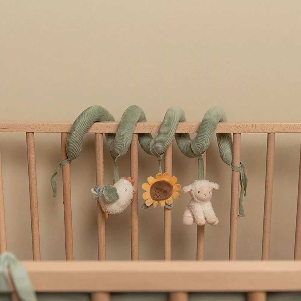 A Little Dutch activity spirál - Little Farm tele van olyan funkciókkal, amelyek a babák fejlődését szolgálják, és a szülők számára is megkönnyítik a mindennapokat.