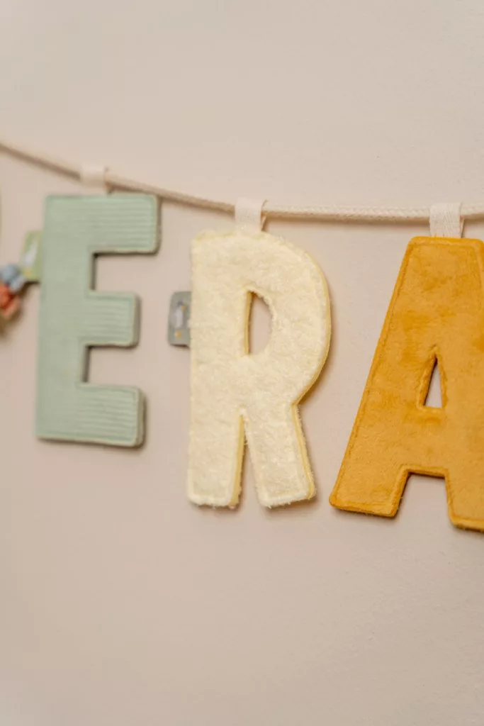 • Dekoratív elem: A Little Dutch felfűzhető textil betű G nem csupán egy játék, hanem egy dekoratív elem is, amely tökéletesen illeszkedik bármelyik gyerekszobába.