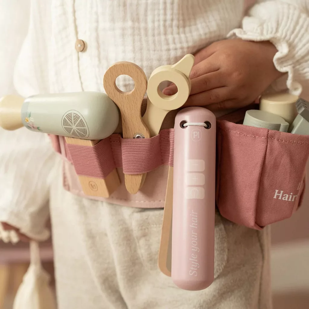 Little Dutch, Little Dutch fodrász készlet, fajáték, fejlesztőjáték, gyerekszoba, fodrászat, játék, LD-LD2514, Kockaorszag, szem-kéz koordináció, finommotoros készség, szerepjáték, ajándék gyereknek, 3 éves kortól, biztonságos játék, nem mérgező festék, pink.
