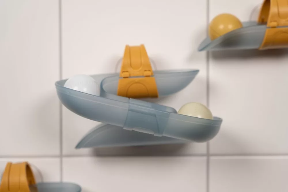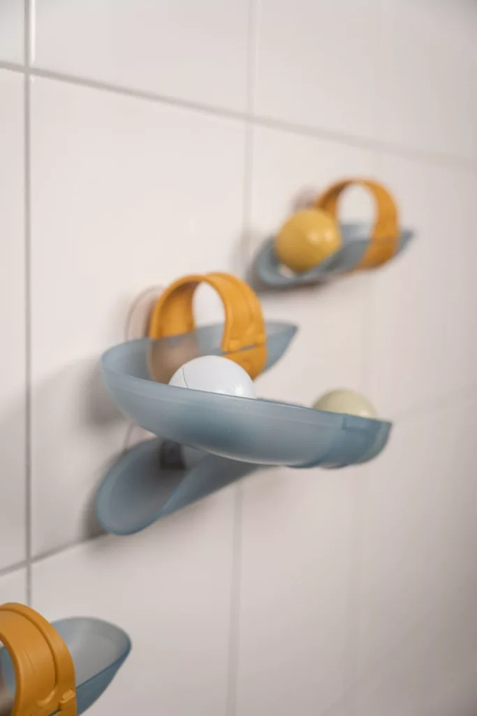 • Könnyű rögzítés: A tapadókorongok segítségével a golyópálya könnyen rögzíthető a fürdőkád vagy a medence falára, így a játék stabilan áll, és nem csúszkál el.