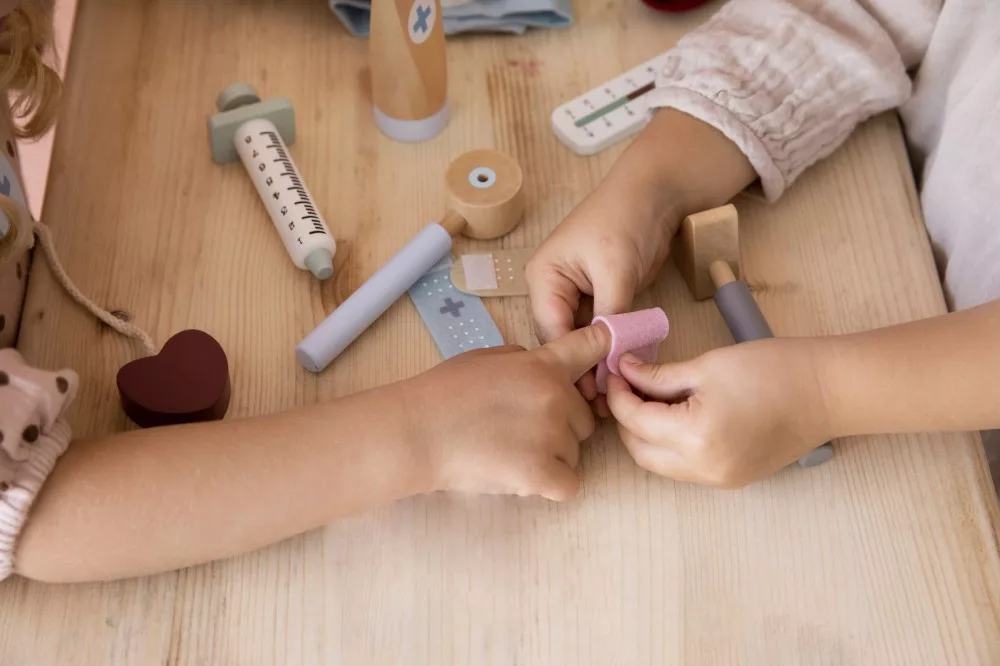 • Segít leküzdeni az orvosokkal kapcsolatos félelmeket: A játékon keresztül a gyerekek megismerkedhetnek az orvosi eszközökkel és a vizsgálatok menetével, így csökkenhet a félelmük az orvoslátogatások során.