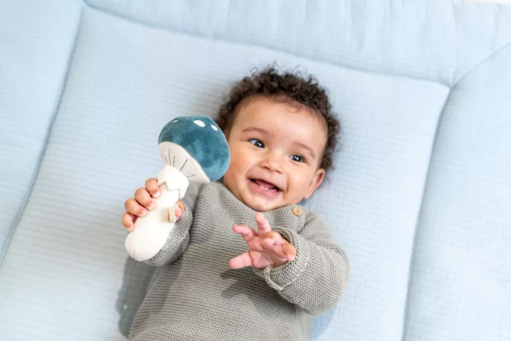 Little Dutch plüss csörgő gomba - Forest Friends - használat közben