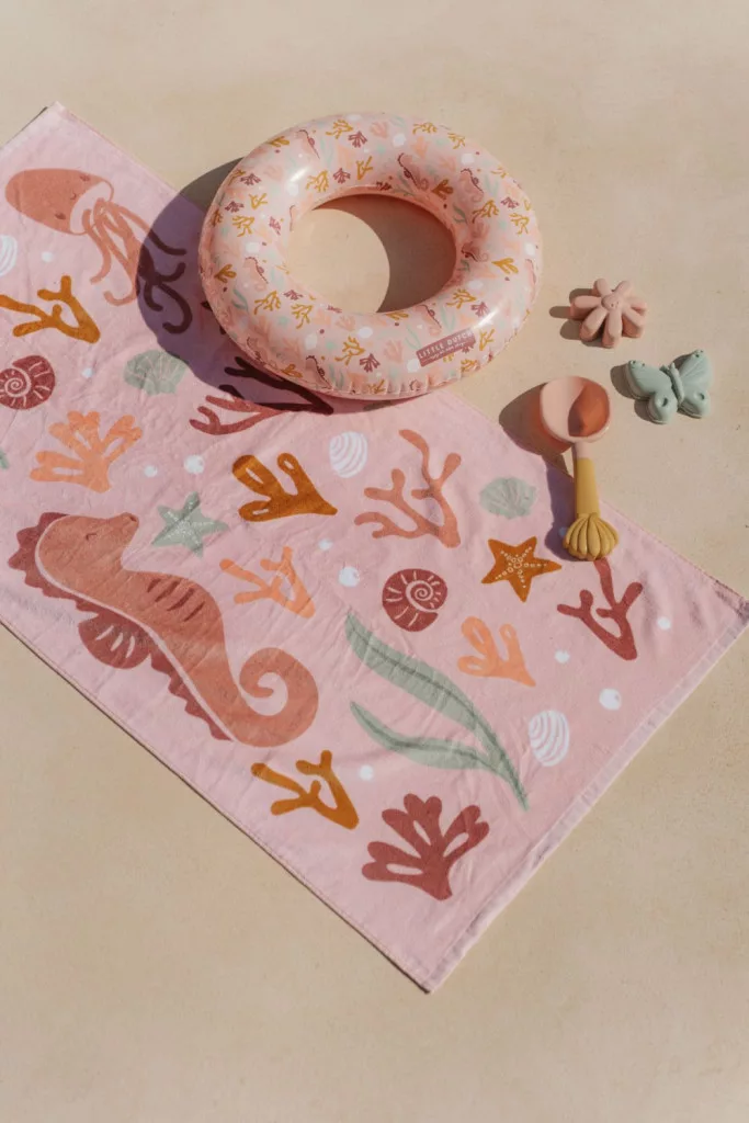 Little Dutch strandtörölköző - Ocean Dreams pink használatban