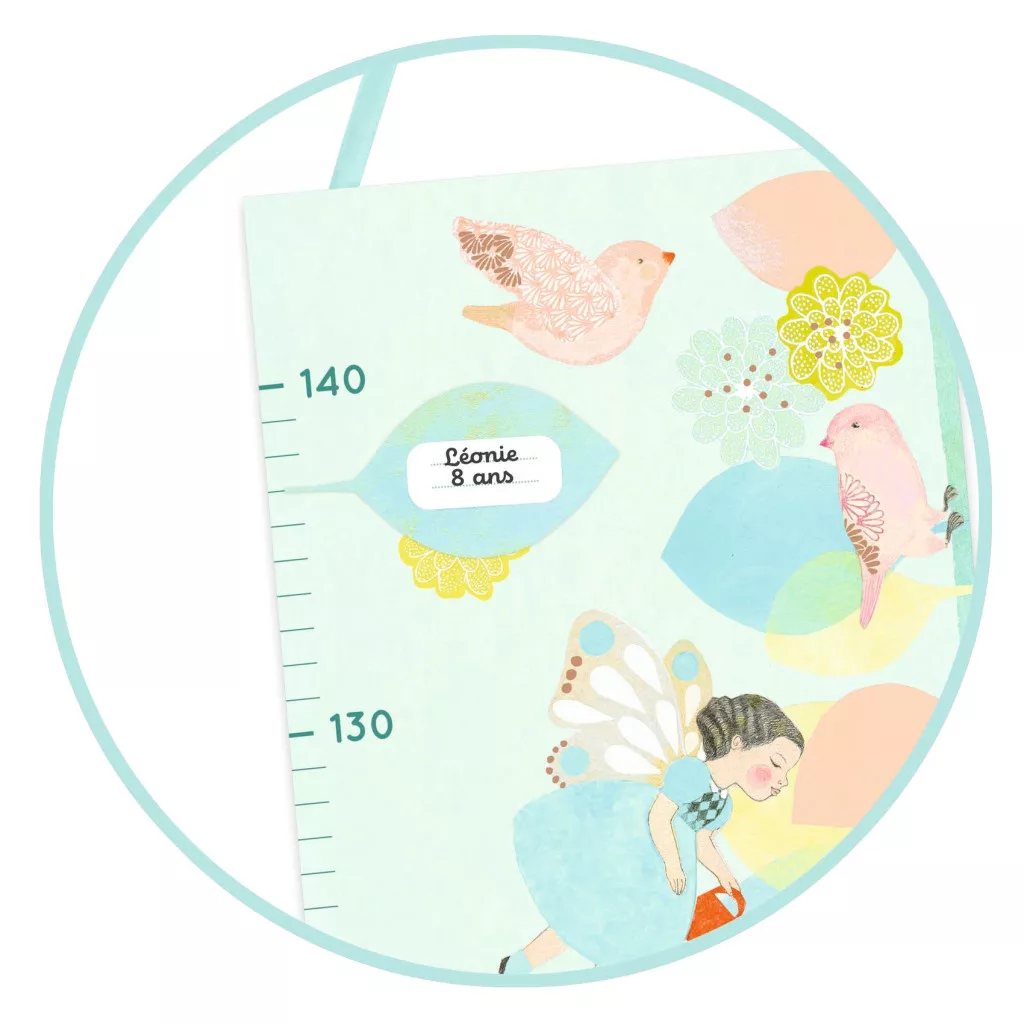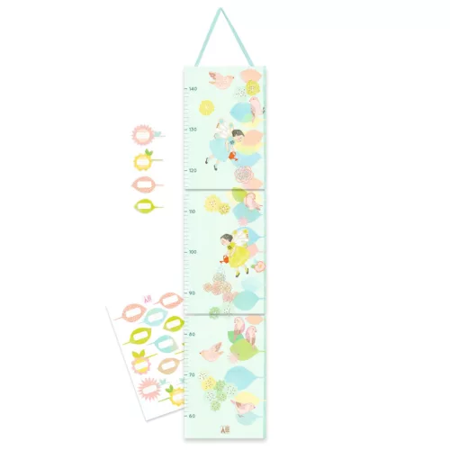 A felhelyezett matricával 140 cm-ig mérhető a gyermek magassága, az áthelyezhető matricákra írható a mérés dátuma.