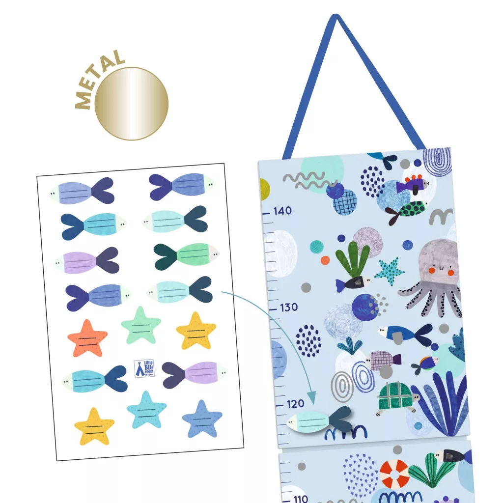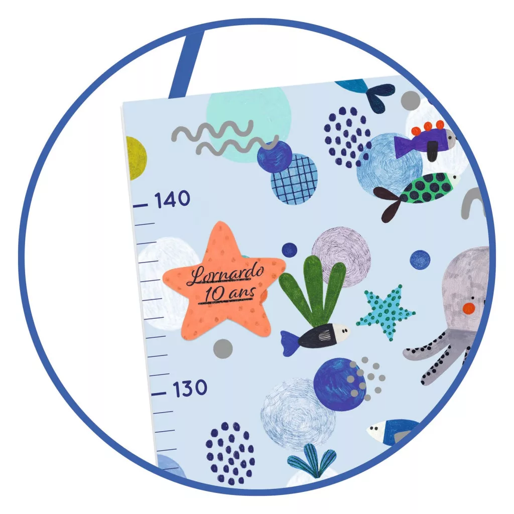 A felhelyezett matricával 140 cm-ig mérhető a gyermek magassága, az áthelyezhető matricákra írható a mérés dátuma.