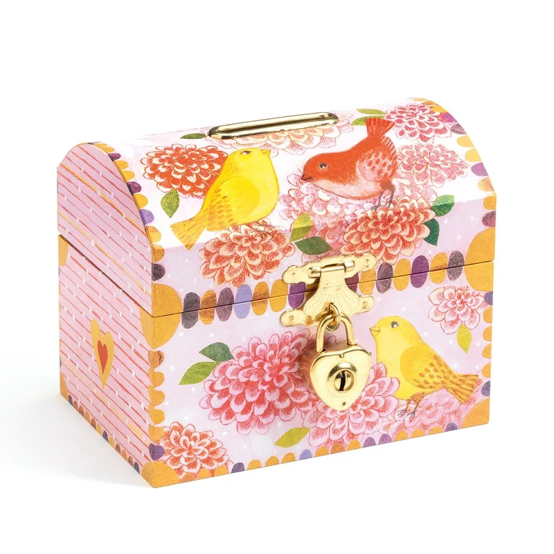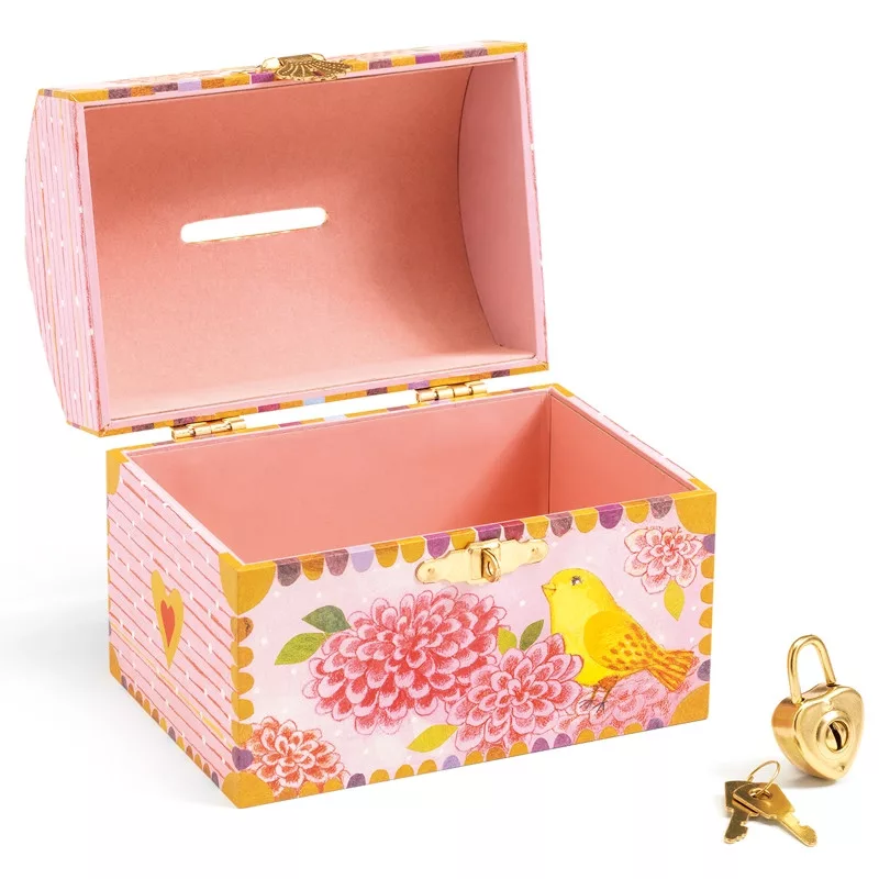 Szép dekoratív tárgy, olyan, mint egy valódi kincsesdoboz. A doboz tetején nyílás van, amelybe egyenként becsúsztathatóak a megtakarított érmék. Fémszegéllyel ellátott nyílás, hogy a pénzes dobozon a nyílás ne sérüljön meg a sok-sok beledobott fémpénz surlódásától. A lakattal lezárt perselynek két kulcsa van.
