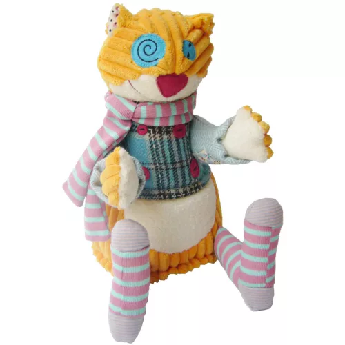 "Ciao barátom! Én vagyok a komikus a Deglingos bandában. Mindig akad egy vicc a tarsolyomban. OK, itt van egy mindjárt: - Hogy hívják a lassú postást? - Levéltetű… Hihi, van még sokkal több is…. velem minden mulatságos(z)! Lehetnék a barátod? 26 cm magas vagyok, ülve… hehe...Cirmos(z) cica haj, hová lett a tavalyi vaj? Falánk vagyok, de csak a tejtermékekre, nem vagyok ragadozó vadmacska, (bár a külsőm fura lehet elsőre), sőt gyakran támad dorombolhatnékom, ám én nem vonzom a bolhákat! Jól jársz kelsz velem!"