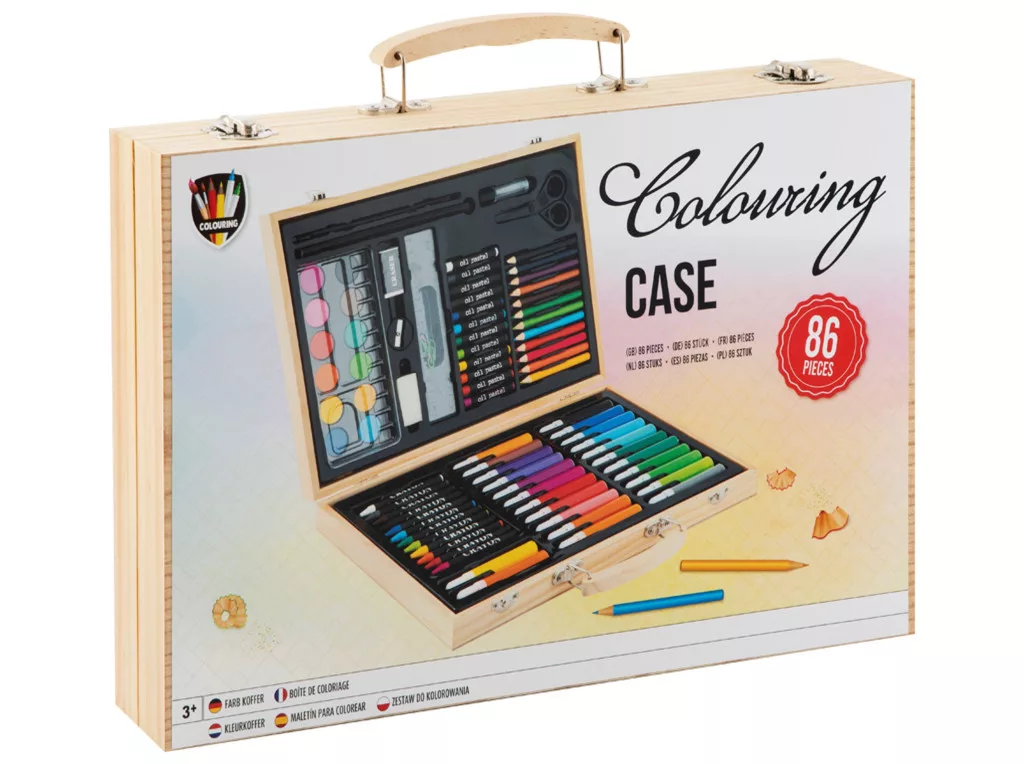 Rajzkészlet fa bőröndben 86 db-os CraftArt
