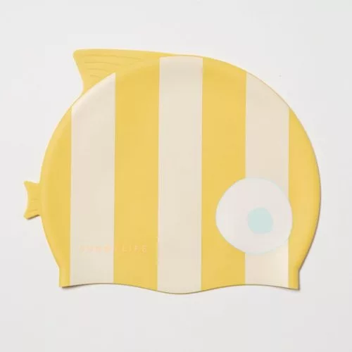 Sunnylife gyerek úszósapka - Finn the Fish Mustard Stripe
