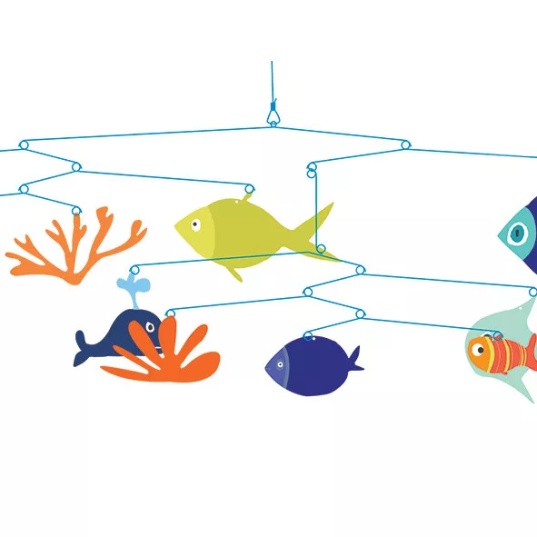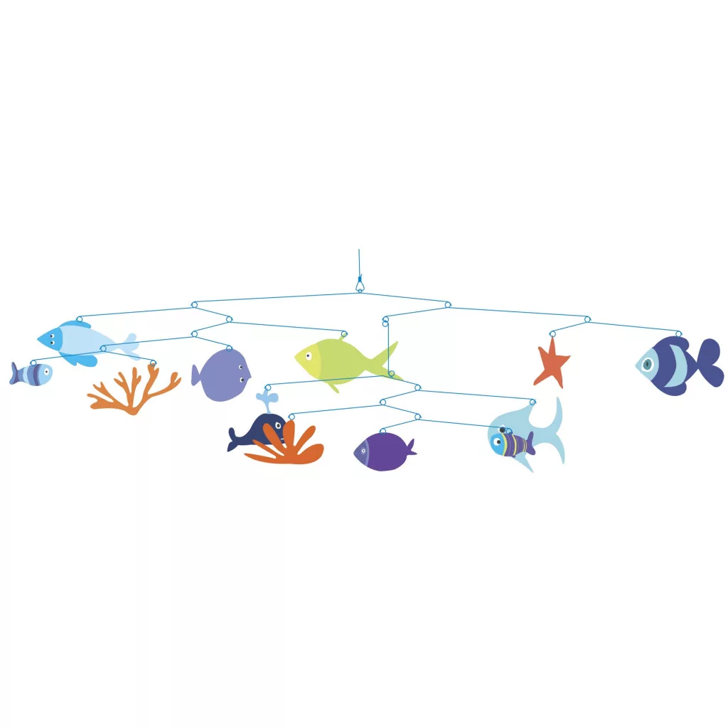 A Djeco A tenger világa szélforgóján a halak körbe úsznak, ha a légáramlás hajtja őket.