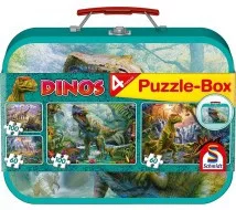 Dinoszauruszok 2x60, 2x100 db, Puzzle Box - Fém kofferben (56495) Dinos, Puzzle-Box / Dinosaurs, Puzzle Box, 2x60, 2x100 db