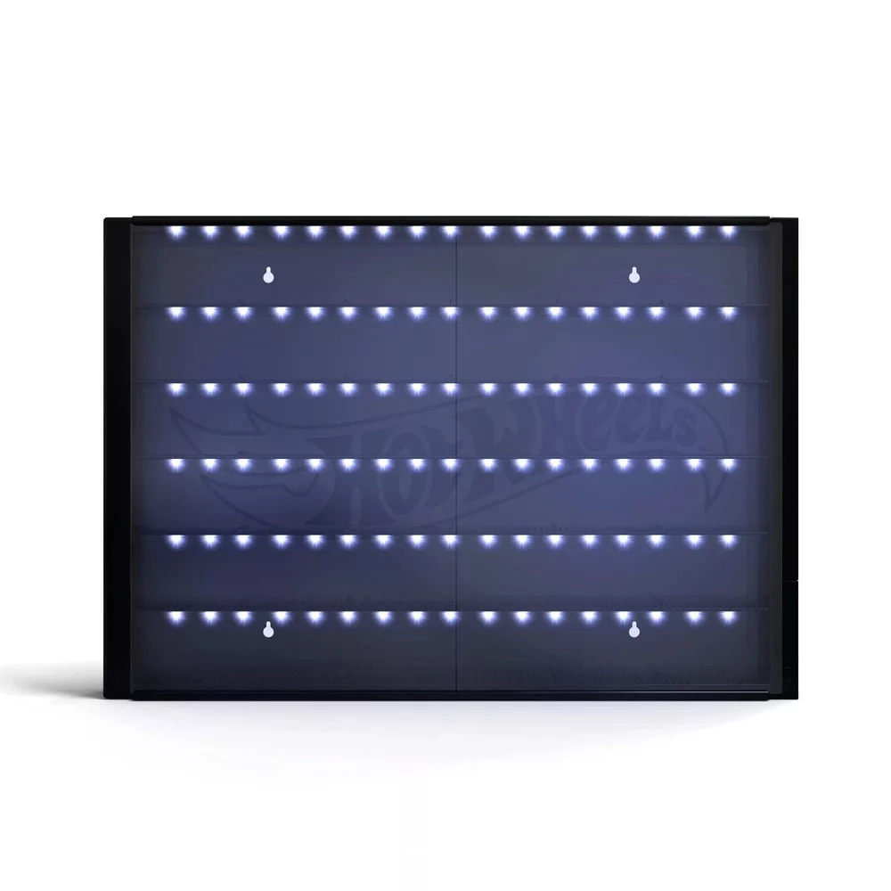 Prémium Hot Wheels falivitrin LED világítással – 5 szintes, 36 autóhoz (pormentes)