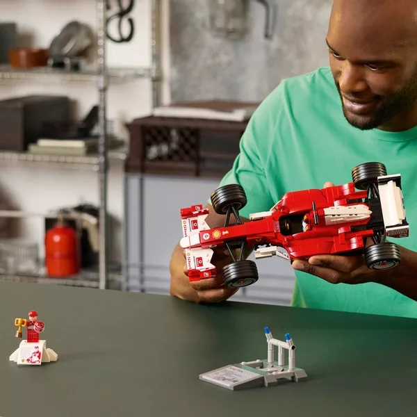• A 735 darabos versenyikon felnőtt rajongóknak, gyűjtőknek és Ferrari-rajongóknak szól. A LEGO Builder alkalmazás forgatható 3D-s nézetekkel és folyamatjelzővel nyújt támogatást a LEGO F1 modell építése során. Igazi figyelemfelkeltő látványosság minden Schumacher és LEGO rajongó számára.