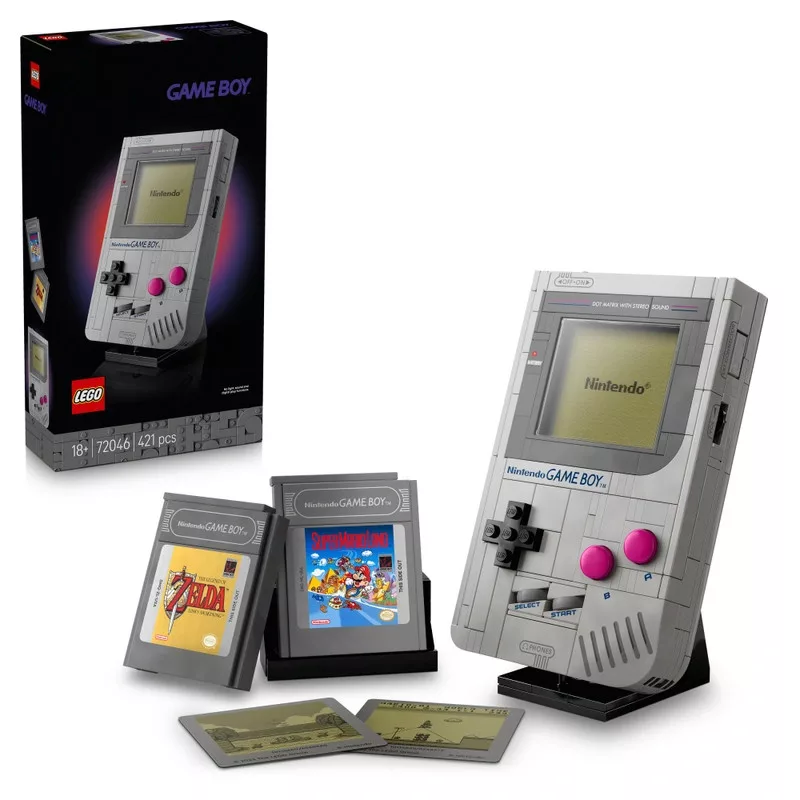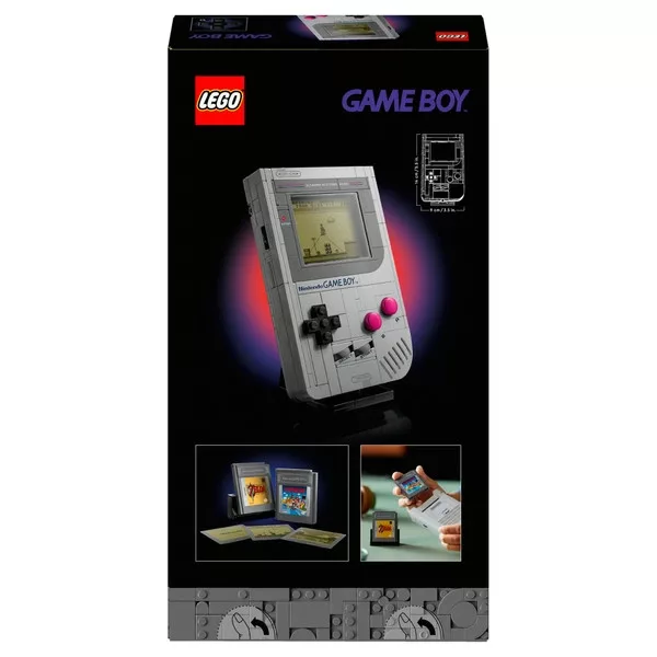 • A készlet lenyűgöző megjelenésű, hangerőszabályzóval, kontrasztbeállítással és kazettahellyel is ellátott, valósághű burkolattal rendelkezik. Különösen figyelemre méltó a két cserélhető LEGO játékkazetta: The Legend of Zelda: Link's Awakening és Super Mario Land. Mindkét kazetta lencsés képernyővel rendelkezik, amelyen a nosztalgikus Nintendo kezdőképernyő vagy az adott játék grafikája látható. A készletet egy masszív LEGO állvány egészíti ki, így a Game Boy stílusos központi darab lehet a polcokon vagy az íróasztalokon.