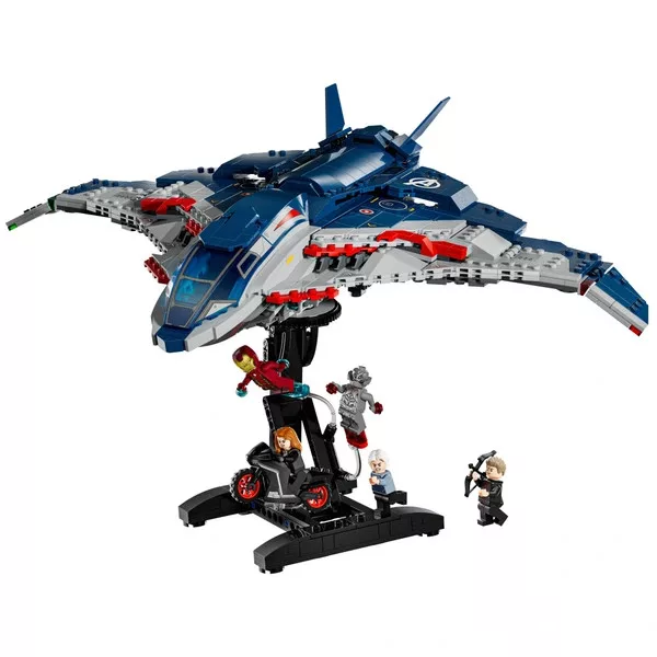 • A megépíthető repülőgép játék 5 LEGO Marvel minifigurát tartalmaz: Fekete Özvegyet a motorján, Vasembert, Higanyszálat, Ultimate Ultront és Sólyomszemet íjával és nyilaival. A figurák a Quinjet különböző részeire rögzíthetők. A repülőgépen nyitható pilótafülke, két elölre szerelt korongvető, valamint tárolóhely található Fekete Özvegy felszerelésének és Sólyomszem íjának. A motorkerékpár a hátsó rakodónyíláson keresztül helyezhető be a modellrepülőgépbe. A forgó állvány lehetővé teszi, hogy a modellt bármilyen szögből megcsodálhasd.
