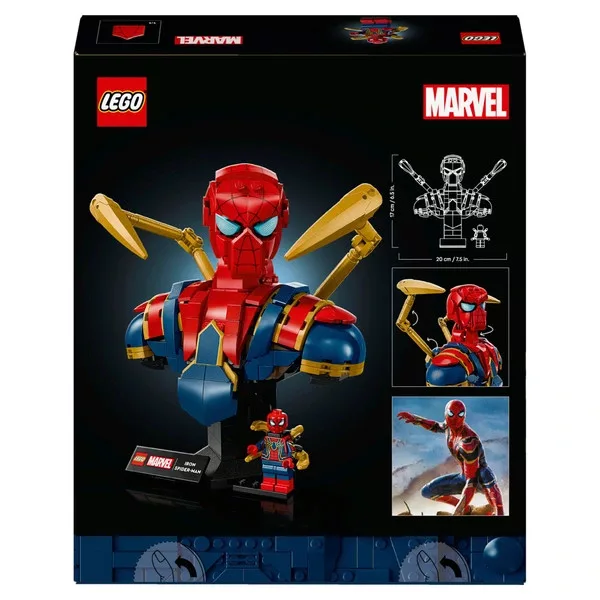 • A legendás szuperhős mellszobrának két mozgatható mechanikus karja és egy forgó feje van. A két cserélhető talp mindegyikét egy névtábla díszíti. Ezek közül a talpak közül csak az egyiken van hely a levehető Vas Pókember minifigura számára. Ezt a jutalmazó építési projektet a készlet építési útmutatójának digitális verziójával való építési élmény egészíti ki, amely elérhető a LEGO Builder alkalmazásban.