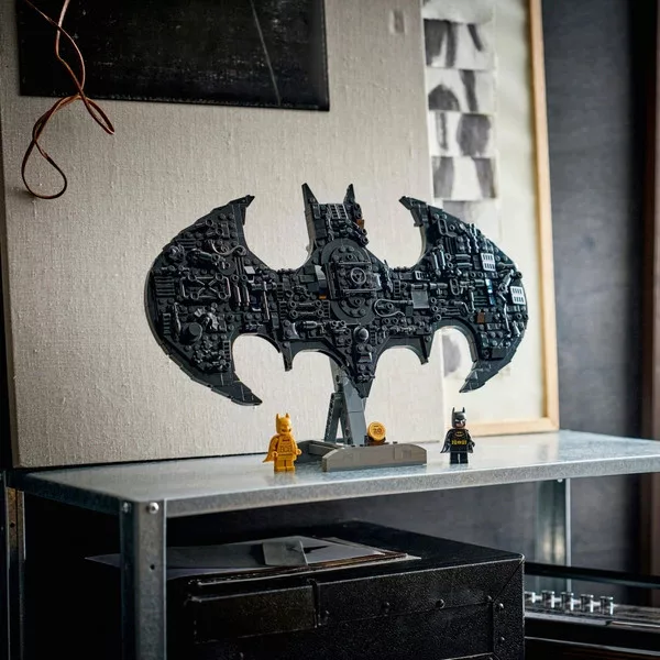 • A játékkészlet rugalmas kiállítási lehetőségeket kínál: állványra helyezhető, vagy a beépített tartónak köszönhetően falra is szerelhető. A DC univerzumból származó levehető tárgyak, köztük a Batarangok és Harley Quinn kalapácsa, lehetővé teszik a testreszabást. A mellékelt arany Batman minifigura és egy klasszikus változat beleillik a középső nyitható nyílásba, amelyet a Batcave titkos ajtaja ihletett.
