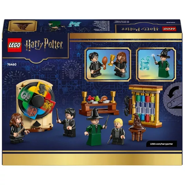 • Egy étkezőasztal és egy házipontszámláló további játéklehetőségeket kínál. Ez a készlet szeretetteljes tisztelgés a legelső, 2001-es LEGO Harry Potter készlet előtt, és a 25. évforduló megünneplésére egy különleges, gyűjthető Patrónust is tartalmaz: McGalagony professzor macskáját, Patrónust. Jellemzőivel és LEGO minifiguráival ez egy kreatív játék, amely lehetővé teszi a fiúk és a lányok számára, hogy játékosan elmerüljenek Roxfort világában. Nagyszerű ajándék is 7 éves vagy annál idősebb fiúk és lányok számára.
