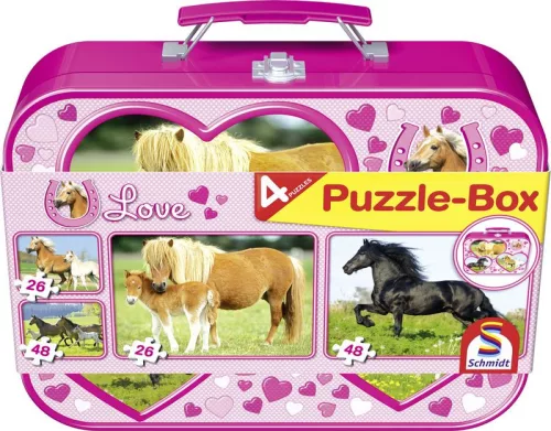 Lovak 2x26,2x48 db, Fém kofferben (55588) Pferde, Puzzle-Box / Horses, Puzzle-Box