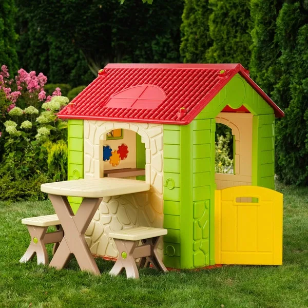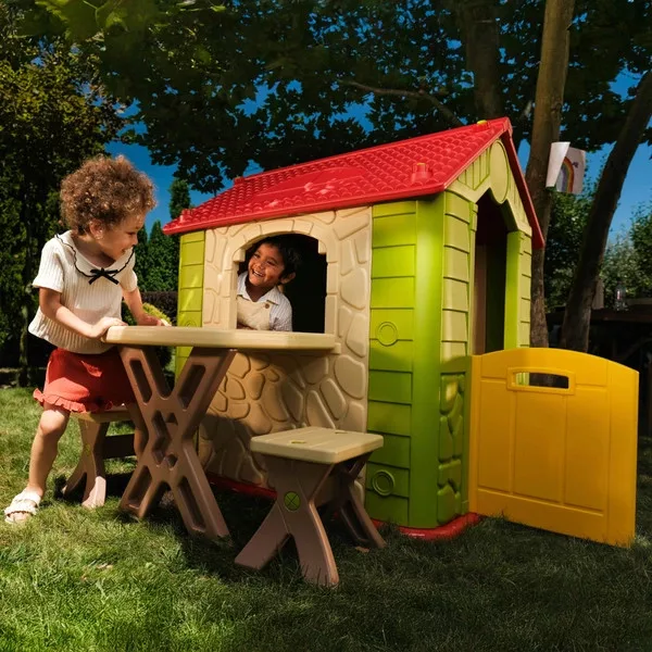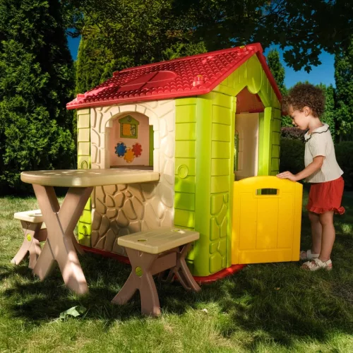 Luxus kerti játszóház asztallal és székekkel, zöld