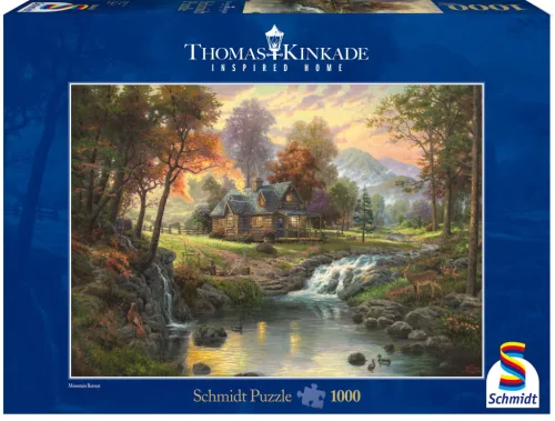 Mountain Retreat, Thomas Kinkade, 1000 db (58445) Holzhaus am Bach