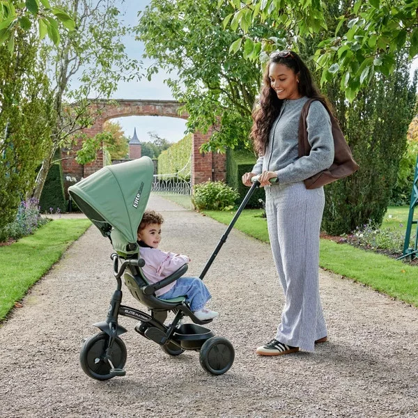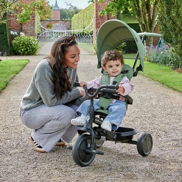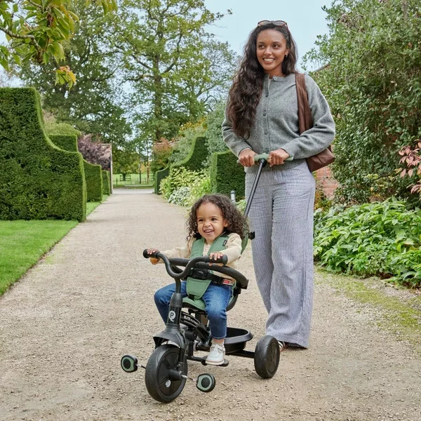 QPlay Elite Platinum 6 az 1-ben háromkerekű és babakocsi kormánykerékkel és tetővel, zöld