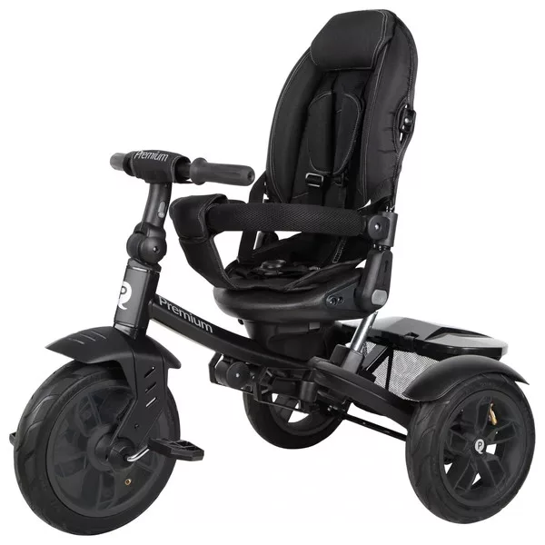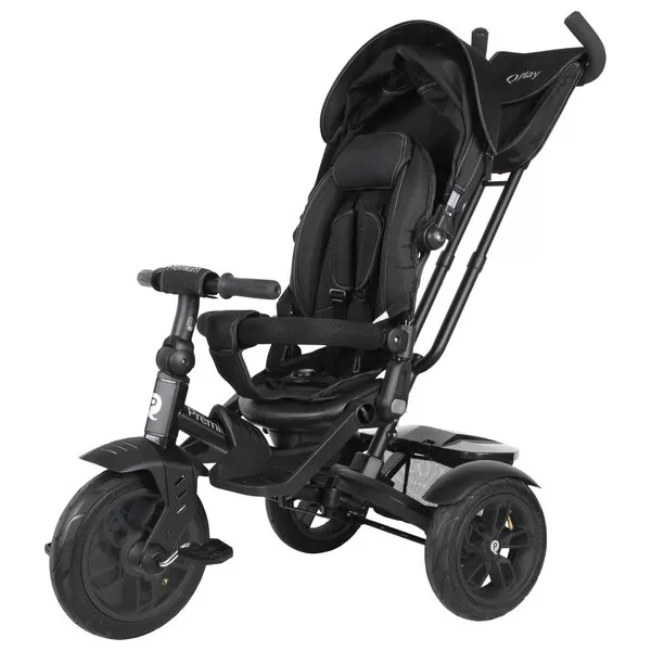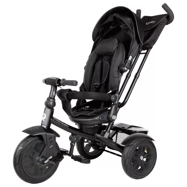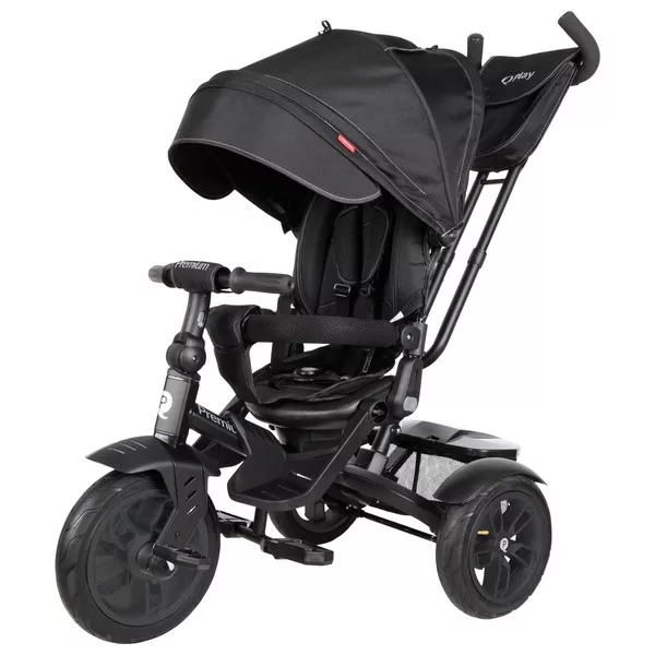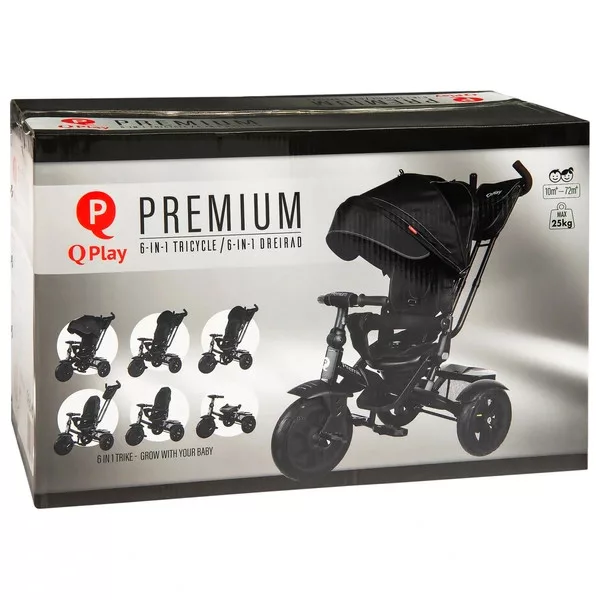 QPlay Prémium 6 az 1-ben háromkerekű és babakocsi kormánykerékkel és tetővel, fekete