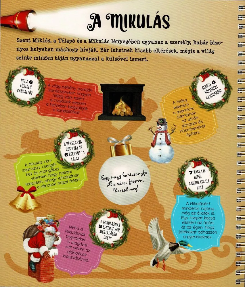 A Zseblámpával - A téli ünnepek nyomában című könyv izgalmas kalandra hívja a gyerekeket, hogy felfedezzék a karácsony szívmelengető pillanatait. A könyv különleges zseblámpa segítségével titkos részleteket fed fel, melyek mögött a karácsony legszebb hagyományai és mesés történetei elevenednek meg.